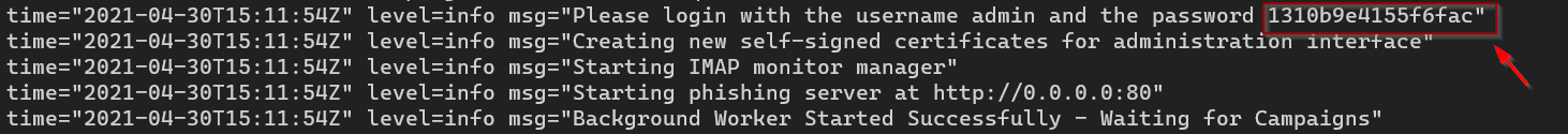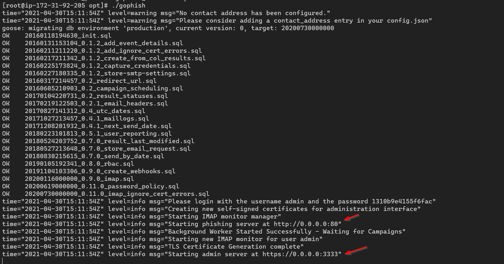 Now let’s run the gophish. You should be seeing the below log if everything was fine till here.