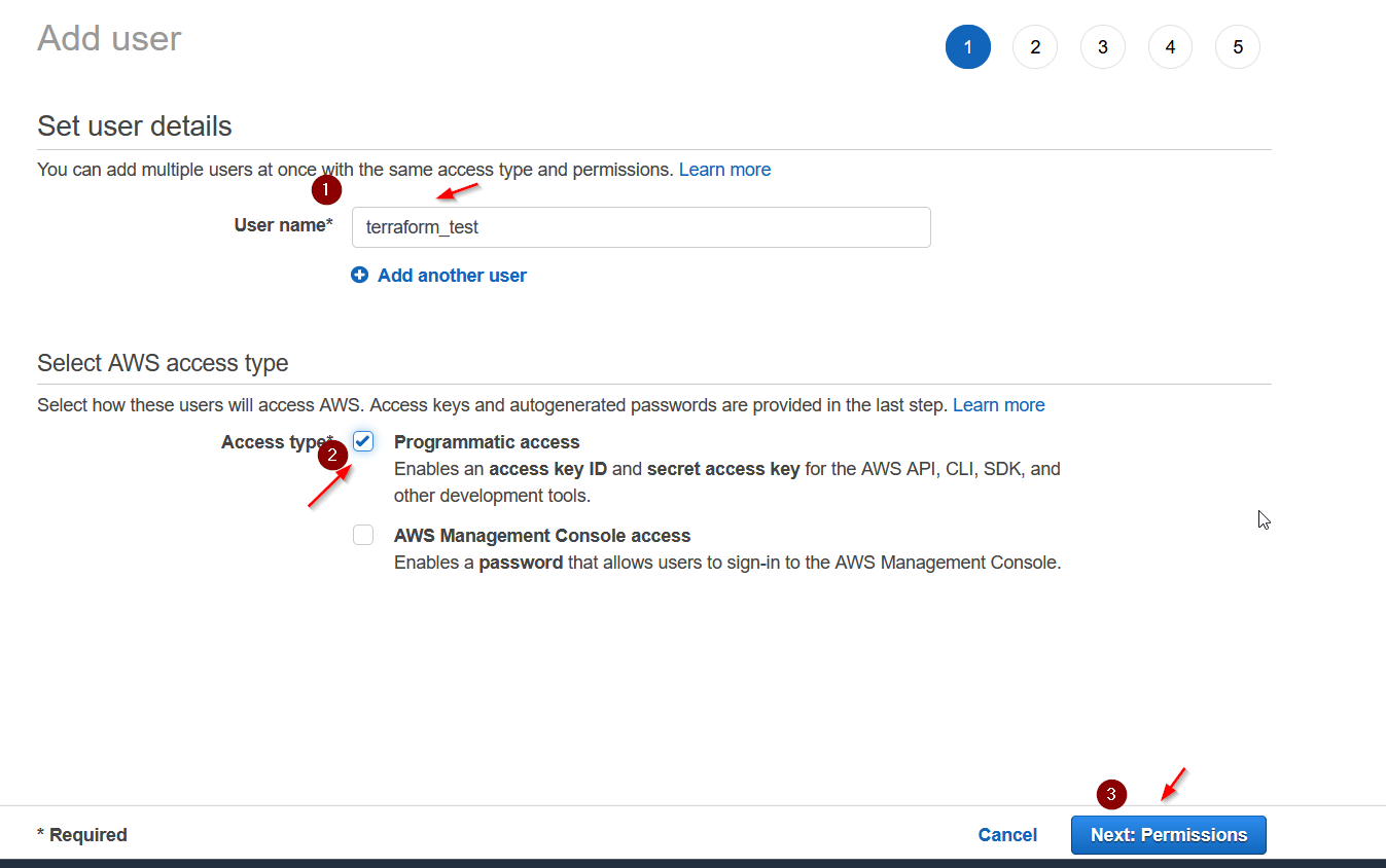 Before we start creating our configuration file for terraform, we need to create a user with programmatic acess whose access key terraform can use while provision the cloud resources.
